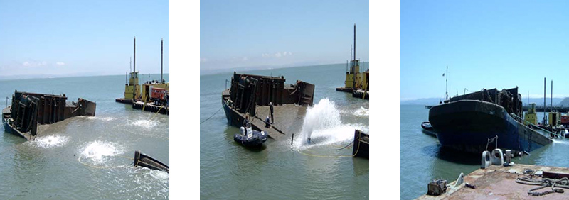 In San Francisco at Hunter's Point, a shipping barge began to sink until it was almost 95% submerged. The barge owner contracted a local pump company to pump the barge empty. After 6 weeks of pumping the barge was not only still submerged but had also managed to be completely turned upside down.