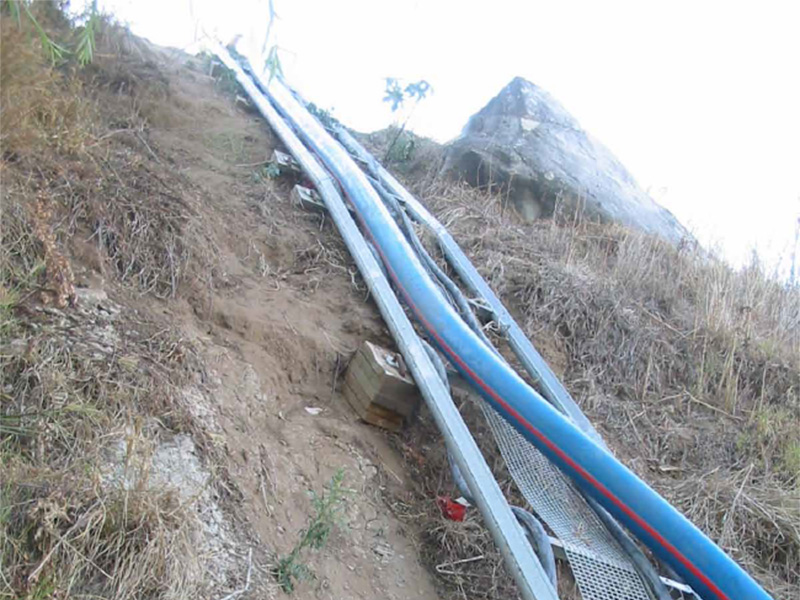 The pump was installed on 30 m long rails on an inclined riverbank so that it could be lowered and lifted easily.