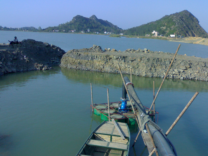 The pump installed at the lake has been set on a drum pontoon and has been operating in a floating manner so as not to suck the bottom sand. A total of three LH-series pumps are being used in this application.
