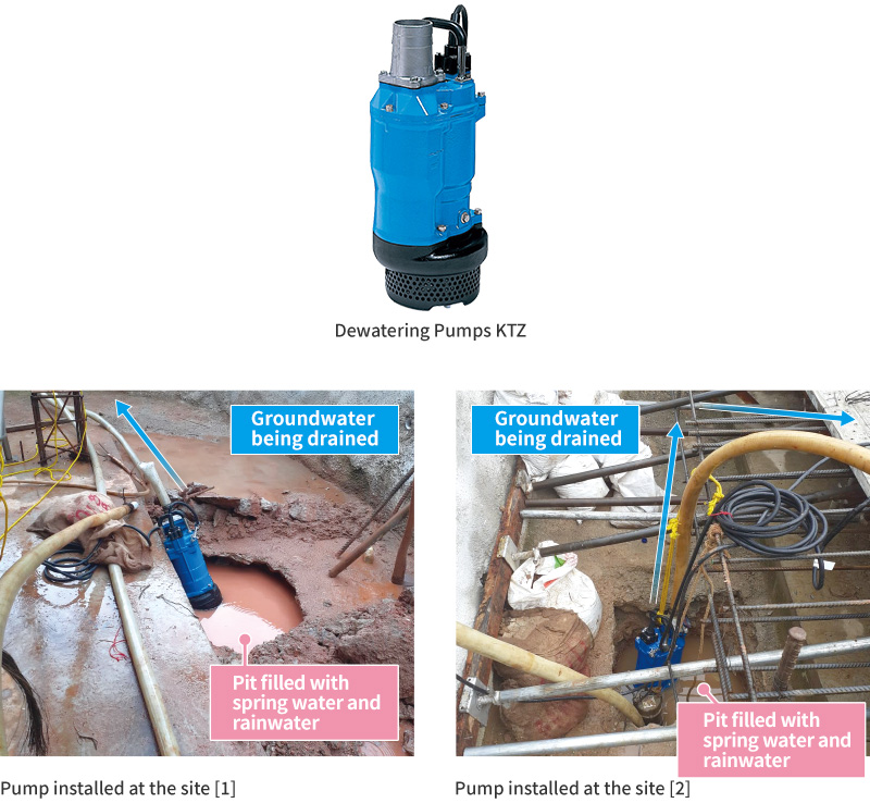 Tsurumi delivered a number of its submersible pumps for a large construction project in the center of the Indonesian capital of Jakarta. They were used to drain not only spring water encountered in the civil engineering phase but also rainwater brought by frequent squalls that are typical to Southeast Asia. The overseas customer highly rated the pumps for their excellent durability and ease of maintenance.