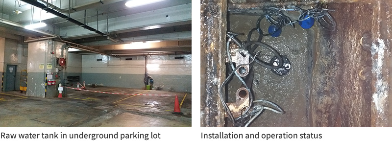BN-series submersible smashing cutter pumps were installed in a raw water tank in the underground area of an industrial building located in Hong Kong. The raw water tank is located in the parking area on the first floor below ground. Sewage generated by the commercial tenants (from toilets, kitchen drainage, industrial waste liquids, etc.) is collected and transferred by the submersible pumps to the public sewage pipe.